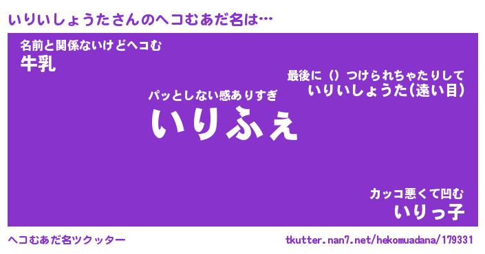 | 男性向けラノベタイトル風あだ名 | 『いりいしょうたの憂鬱』 |
