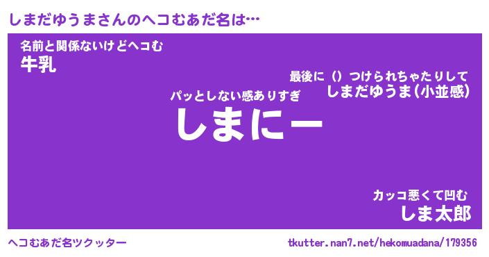 | 恥ずかしいあだ名 | 『プリティーしまだゆうま』『しまっちょ』 |