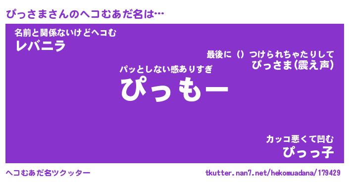 | 意味不明あだ名 | 『ペロリンぴっさま』『永久保存ぴっさま』 |
