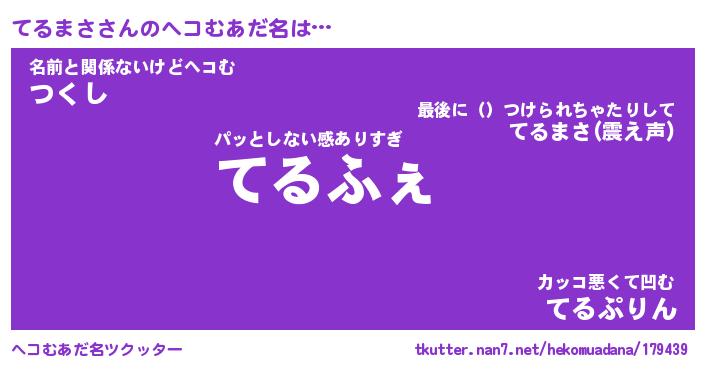 | 意味不明あだ名 | 『ペロリンてるまさ』『永久保存てるまさ』 |