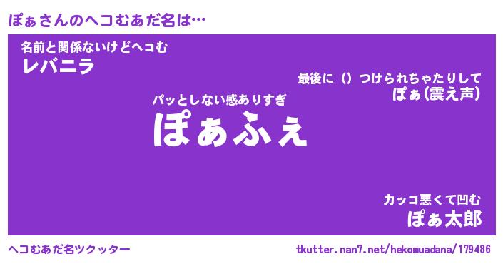 | ポケモン風あだ名 | 『ポァチュウ』『ポァダネ』『ヒポァ』 |