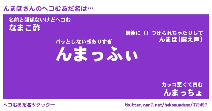 | ポケモン風あだ名 | 『ンマチュウ』『ンマホダネ』 |