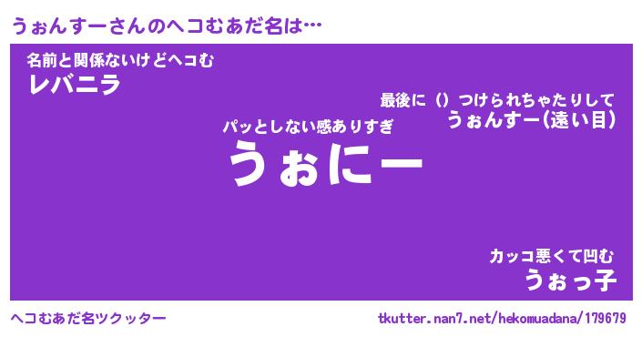| 自動車の名前っぽいあだ名 | 『ウォティマ』『ウスラー』『ウント』 |
