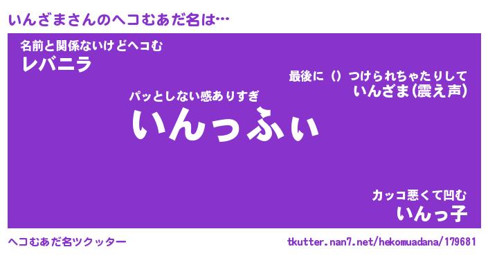 | 意味不明あだ名 | 『ペロリンいんざま』『永久保存いんざま』 |