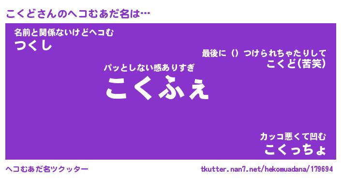 | ヒーロー風カッコイイあだ名 | 『スーパーコクド』『ウルトラこくどマン』 |