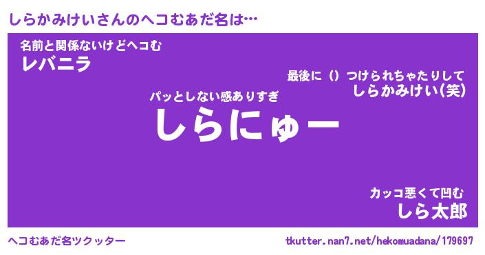 | 意味不明あだ名 | 『ペロリンしらかみけい』 |