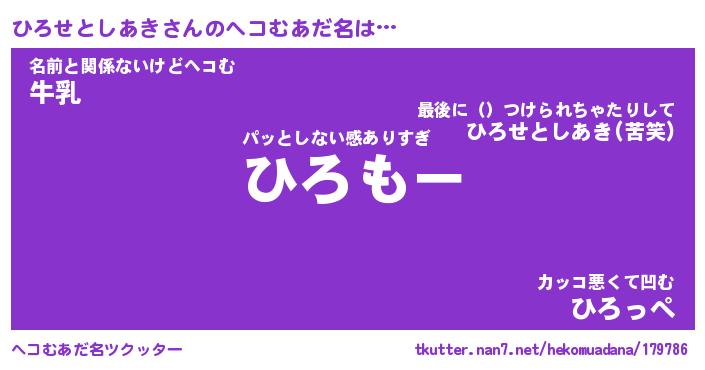 | 意味不明あだ名 | 『ペロリンひろせとしあき』 |