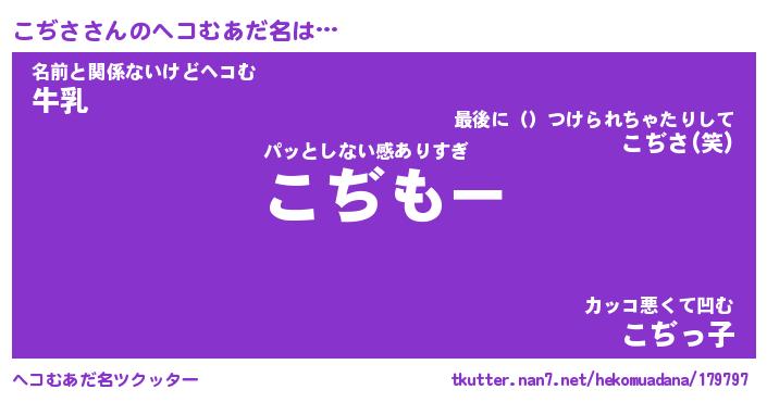 | 意味不明あだ名 | 『ペロリンこぢさ』『こぢさフォーエバー』 |