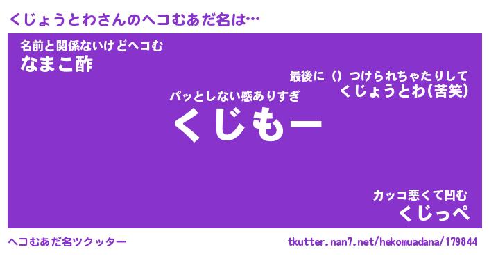 | 恥ずかしいあだ名 | 『プリティーくじょうとわ』『くじっちょ』 |