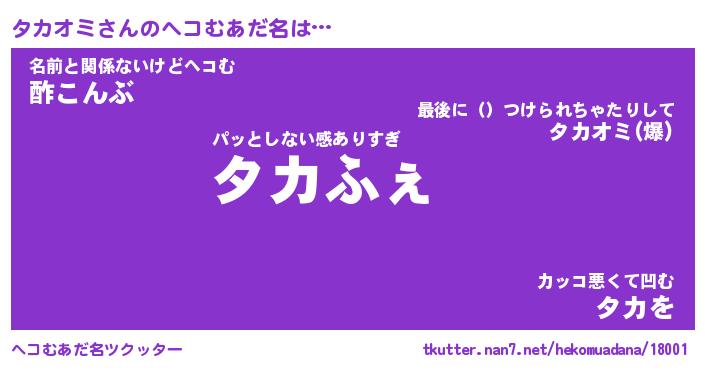 | ヒーロー風カッコイイあだ名 | 『スーパータカオミ』『幻影騎士タカ』 |