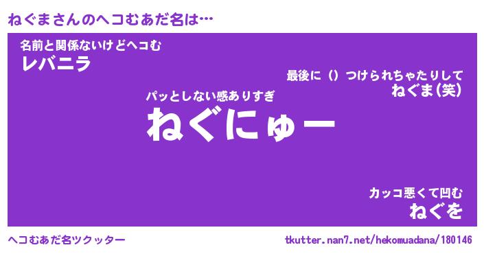 | 意味不明あだ名 | 『ペロリンねぐま』『ねぐまフォーエバー』 |