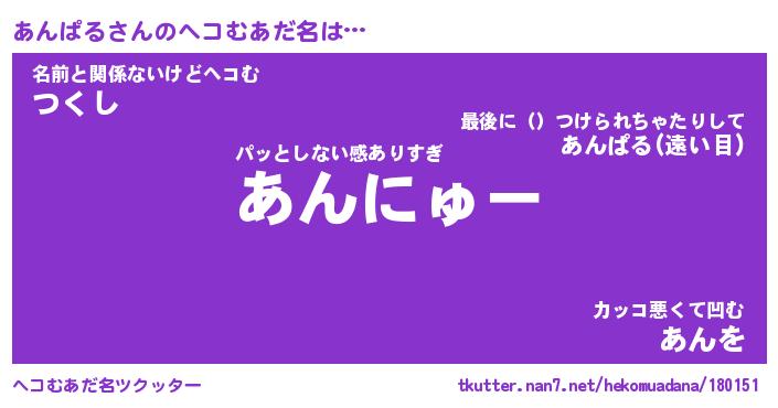 | ポケモン風あだ名 | 『アンチュウ』『アンパダネ』 |