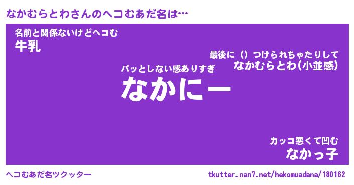 | 恥ずかしいあだ名 | 『プリティーなかむらとわ』『なかっちょ』 |