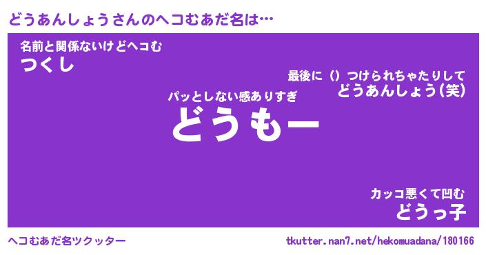 | ポケモン風あだ名 | 『ドウチュウ』『ドウアダネ』 |