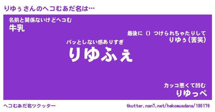 | ヒーロー風カッコイイあだ名 | 『スーパーリユゥ』『ウルトラりゆぅマン』 |