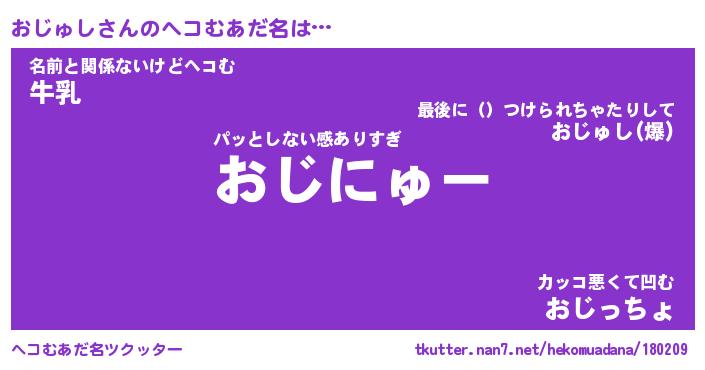 | 意味不明あだ名 | 『ペロリンおじゅし』『永久保存おじゅし』 |
