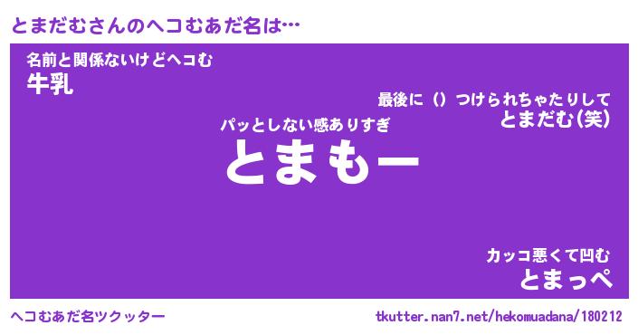 | 男性向けラノベタイトル風あだ名 | 『とまだむの憂鬱』 |