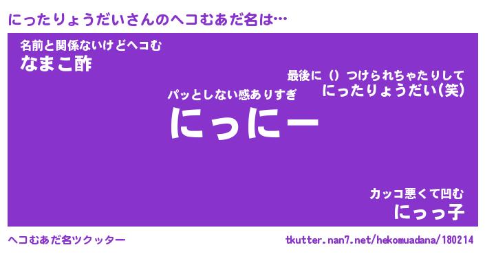 | ポケモン風あだ名 | 『ニッチュウ』『ニッタダネ』 |