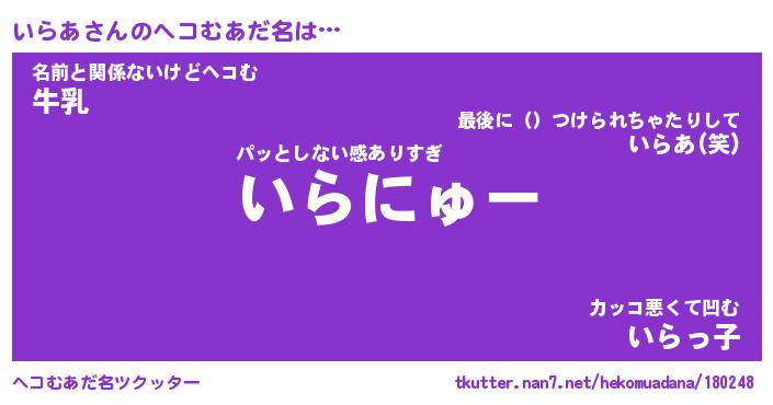 | ヒーロー風カッコイイあだ名 | 『スーパーイラア』『ウルトラいらあマン』 |