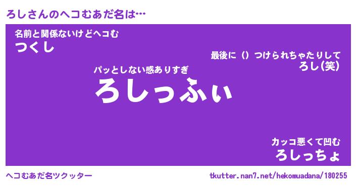 | 2回繰り返すあだ名 | 『ろしろし』『ろろしし』『にたにた』 |