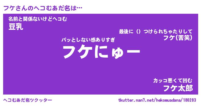 | 2回繰り返すあだ名 | 『フケフケ』『フフケケ』『うずうず』 |