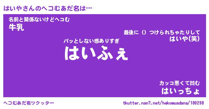 | ヒーロー風カッコイイあだ名 | 『スーパーハイヤ』『ウルトラはいやマン』 |