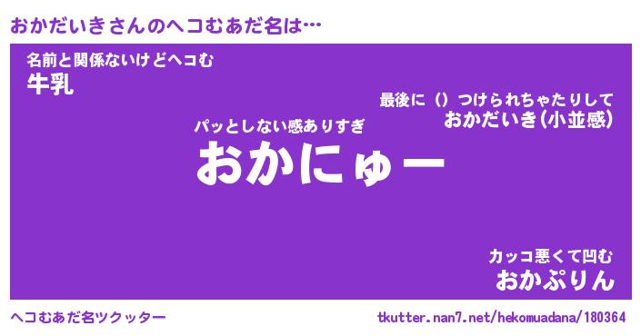 | 女子向けラノベタイトル風あだ名 | 『(仮)おかだいきのやんごとなき事情』 |