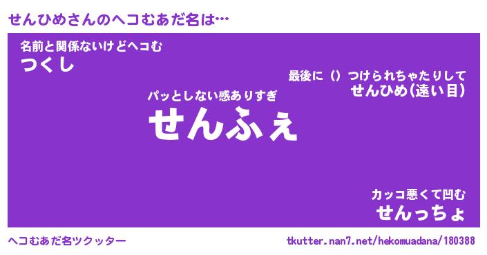 | 胡散臭い通販商品みたいなあだ名 | 『億万長者になれる水晶球…その名も「せんひめ」』 |
