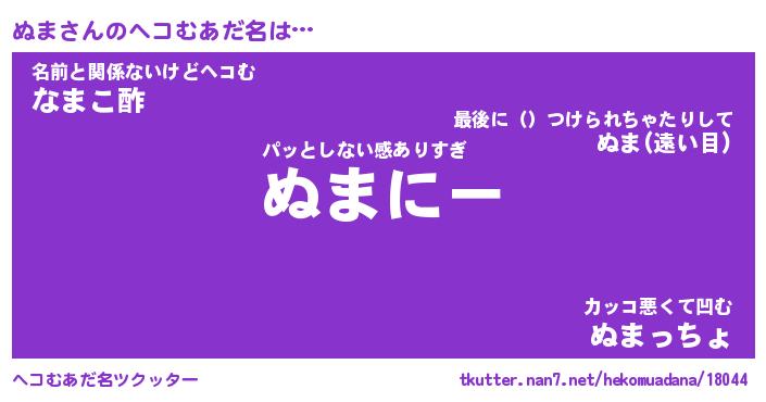 | 男性向けラノベタイトル風あだ名 | 『ぬまの憂鬱』『ノーゲーム・ノーヌマ』 |