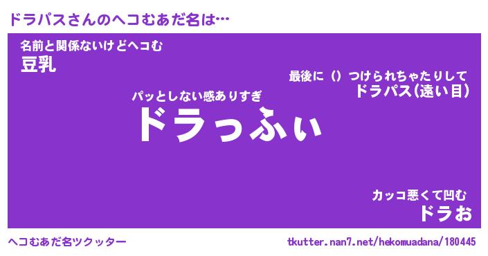 | 意味不明あだ名 | 『ペロリンドラパス』『永久保存ドラパス』 |