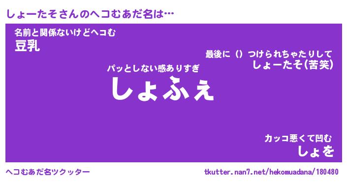 | 欧米人風あだ名 | 『マイケルしょーたそ』 |