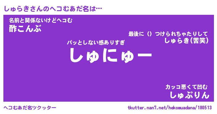 | 意味不明あだ名 | 『ペロリンしゅらき』『永久保存しゅらき』 |