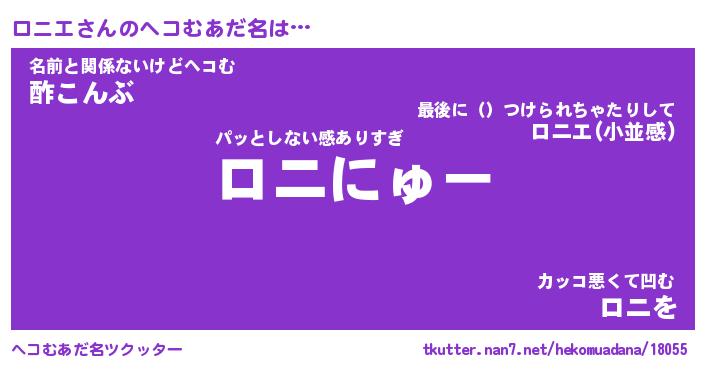 | 2回繰り返すあだ名 | 『ロニロニ』『ロロニニ』『うるうる』 |