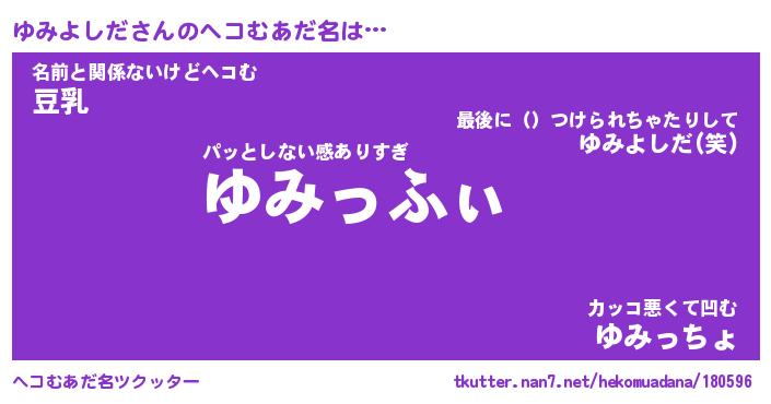 | ファンタジー風あだ名 | 『ユミフェル』『エターナルユミヨシダー』 |