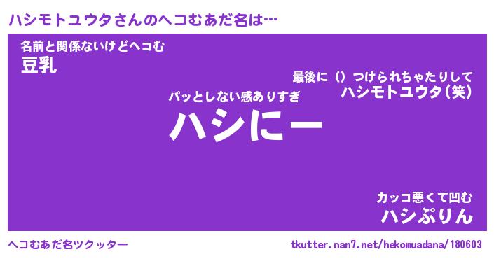 | 欧米人風あだ名 | 『マイケルハシモトユウタ』 |