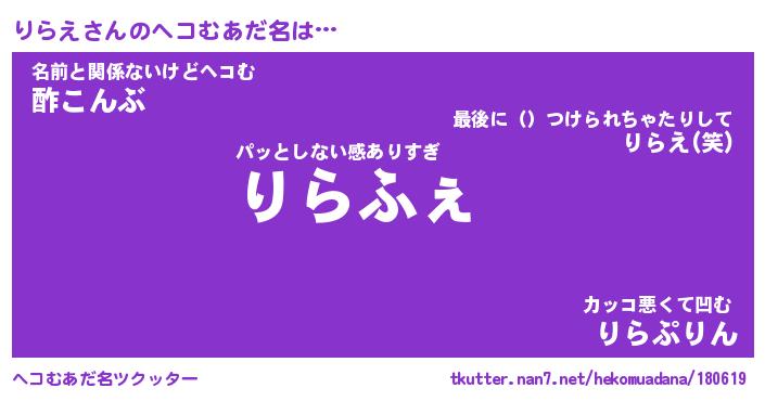 | 意味不明あだ名 | 『ペロリンりらえ』『りらえフォーエバー』 |