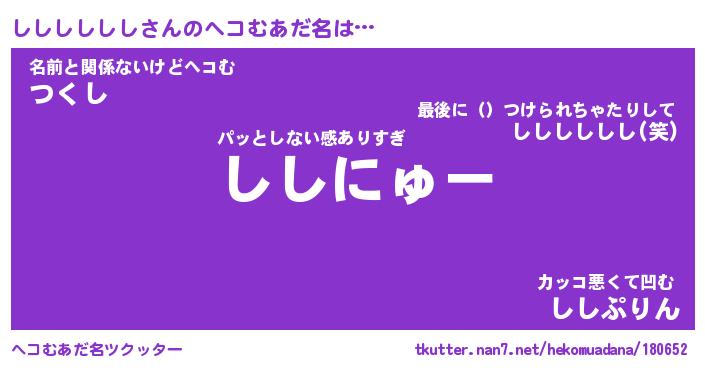 | ヒーロー風カッコイイあだ名 | 『スーパーシシシシシシ』『暗黒騎士シシ』 |