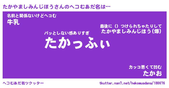 | 胡散臭い通販商品みたいなあだ名 | 『モテモテ間違いなし霊験あらたかなお札…その名も「たかやましみんじほう」』 |