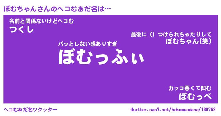 | 男性向けラノベタイトル風あだ名 | 『ぼむちゃんの憂鬱』 |
