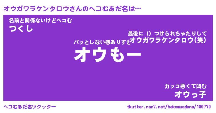 | 胡散臭い通販商品みたいなあだ名 | 『必ず成功する霊験あらたかなお札…その名も「オウガワラケンタロウ」』 |