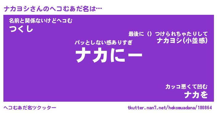 | ヒーロー風カッコイイあだ名 | 『スーパーナカヨシ』『暗黒騎士ナカ』 |