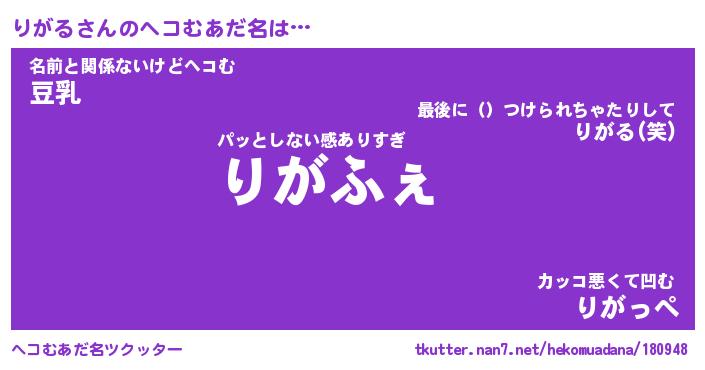| 2回繰り返すあだ名 | 『りがりが』『りりがが』『ねとねと』 |