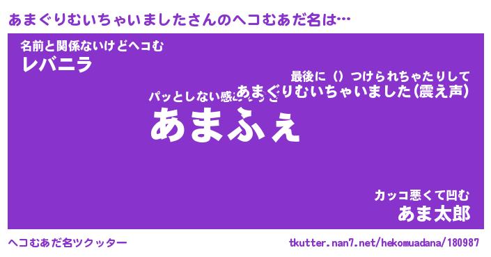 | ヒーロー風カッコイイあだ名 | 『スーパーアマグリムイチャイマシタ』 |