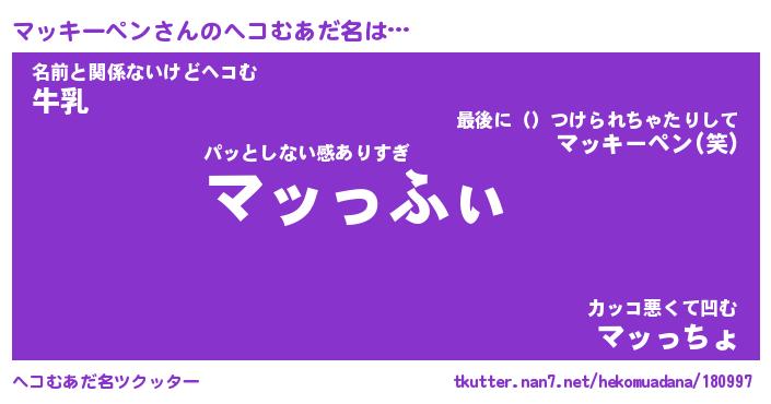 | ヒーロー風カッコイイあだ名 | 『スーパーマッキーペン』『暗黒騎士マッ』 |