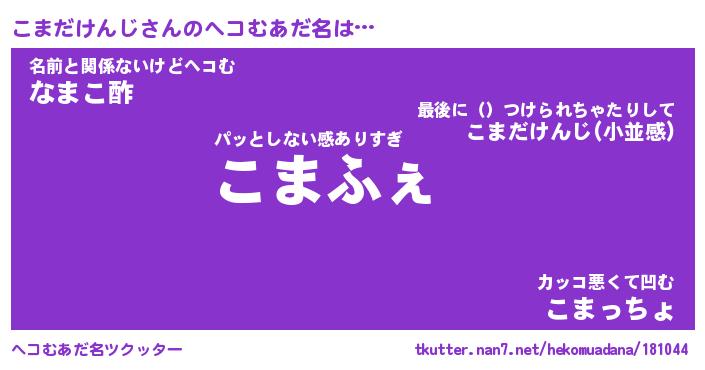 | 恥ずかしいあだ名 | 『プリティーこまだけんじ』『こまっちょ』 |