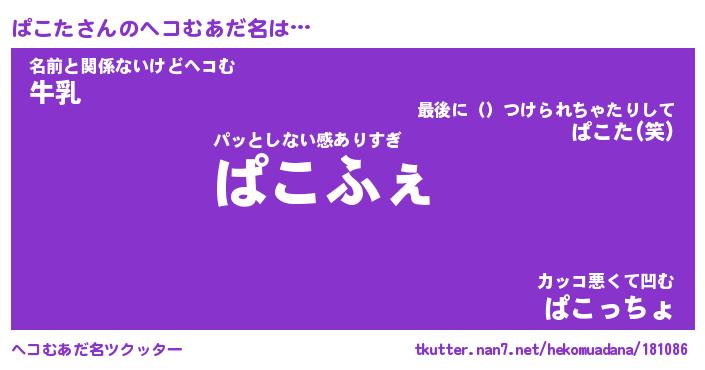 意味不明あだ名 | 『ペロリンぱこた』『ぱこたフォーエバー』 |