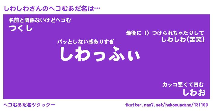 | 2回繰り返すあだ名 | 『しわしわ』『ししわわ』『ごろごろ』 |