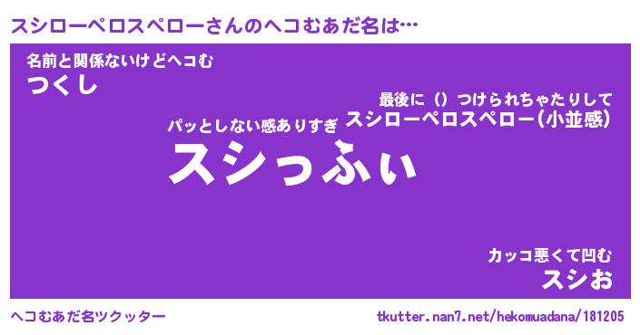 | 意味不明あだ名 | 『ペロリンスシローペロスペロー』 |