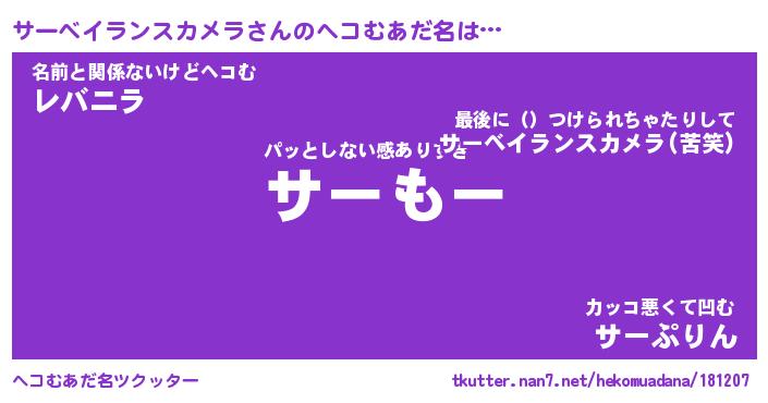 | 意味不明あだ名 | 『ペロリンサーベイランスカメラ』 |