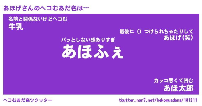| ヒーロー風カッコイイあだ名 | 『スーパーアホゲ』『ウルトラあほげマン』 |
